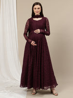 Maroon Lace Maternity & Nursing Flared Kurta with Dupatta