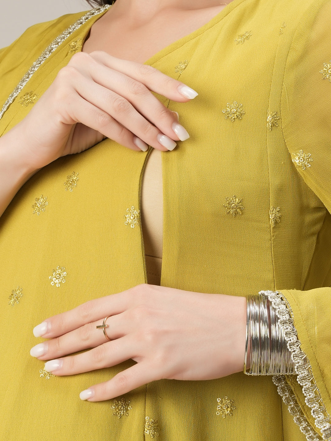 Green Embroidered Maternity Kalidaar Kurta Set with Dupatta