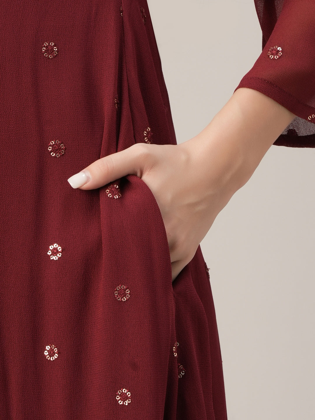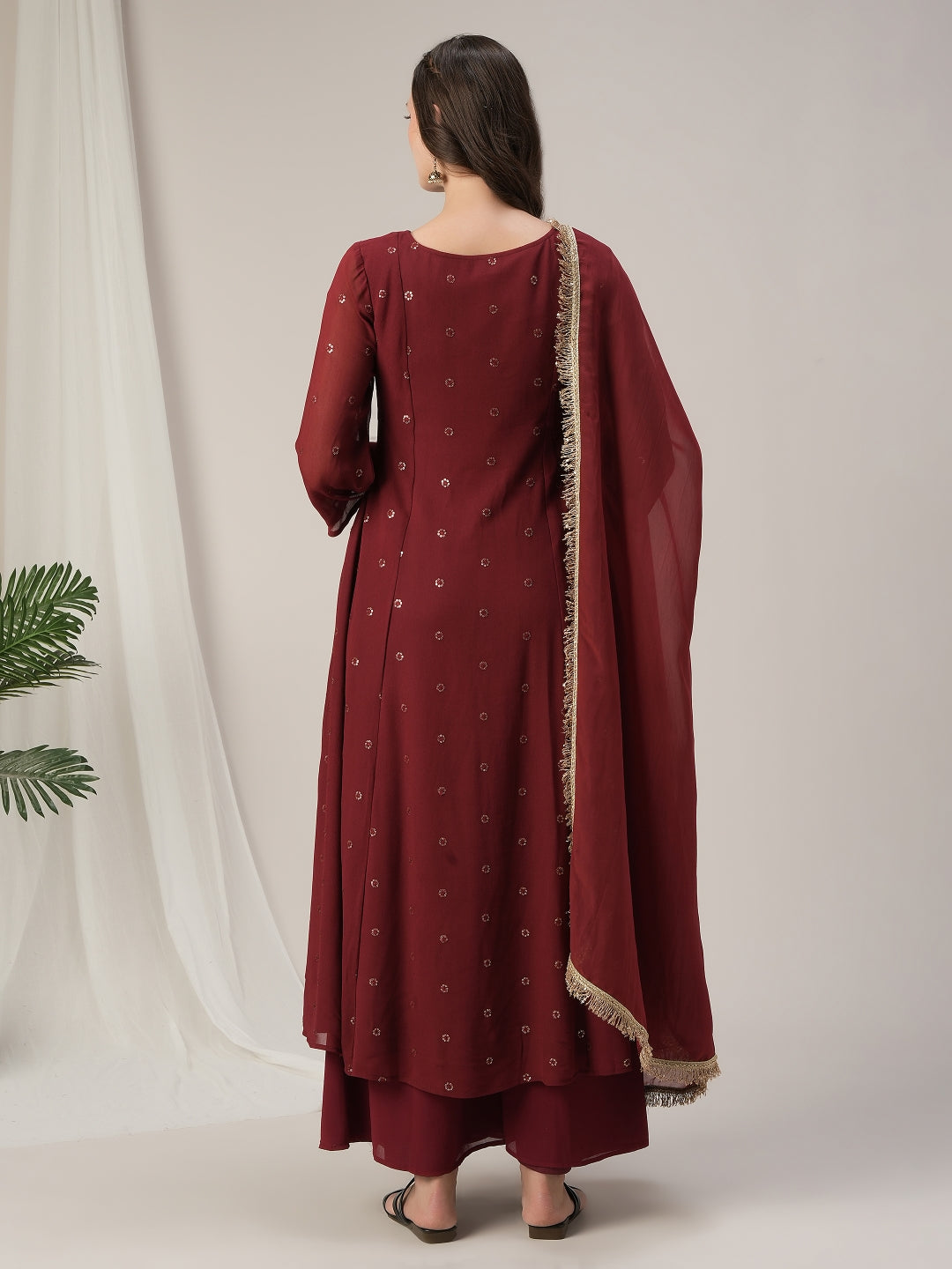 Maroon A-Line Maternity & Nursing Kurta Set with Dupatta