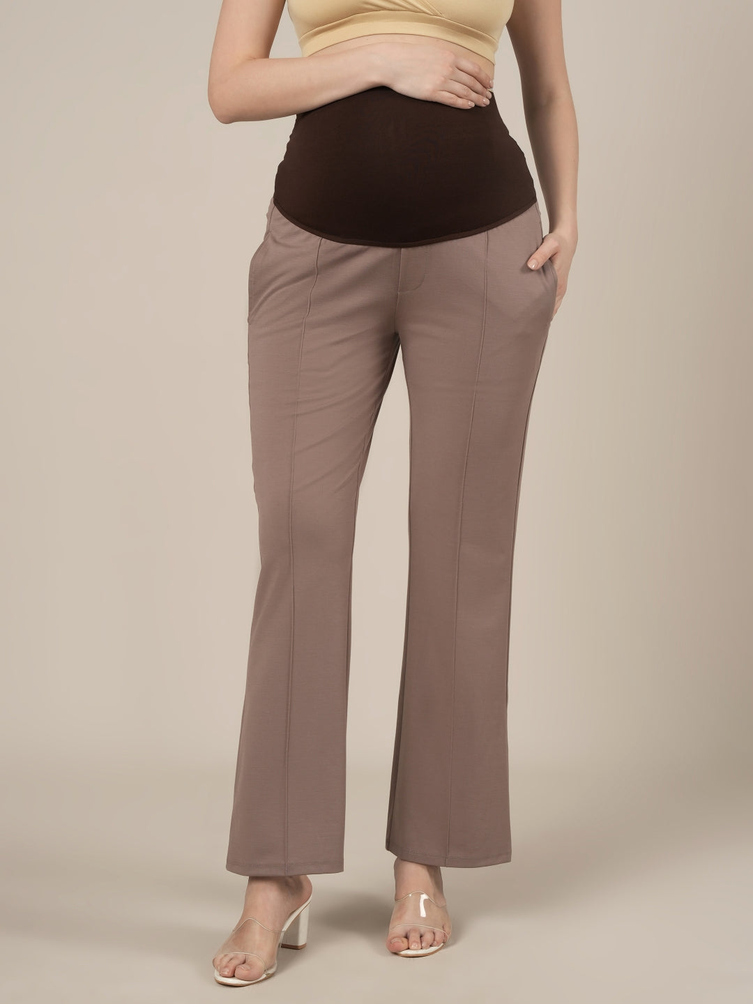 Mousse Maternity Pintuck Bootcut Pants are made from a soft lyocell and elastane blend that provides a smooth feel and flexible stretch for everyday comfort. These high-rise pants are designed to sit comfortably over the bump and feature a bootcut style with pintuck detailing for a clean and structured look. The relaxed fit allows easy movement and makes them suitable for daily wear.