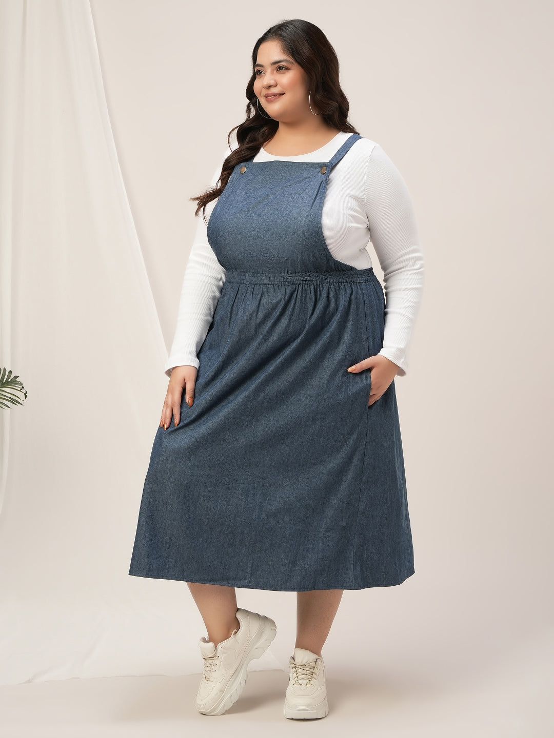 Women Plus Size Blue Denim Dungaree Dress