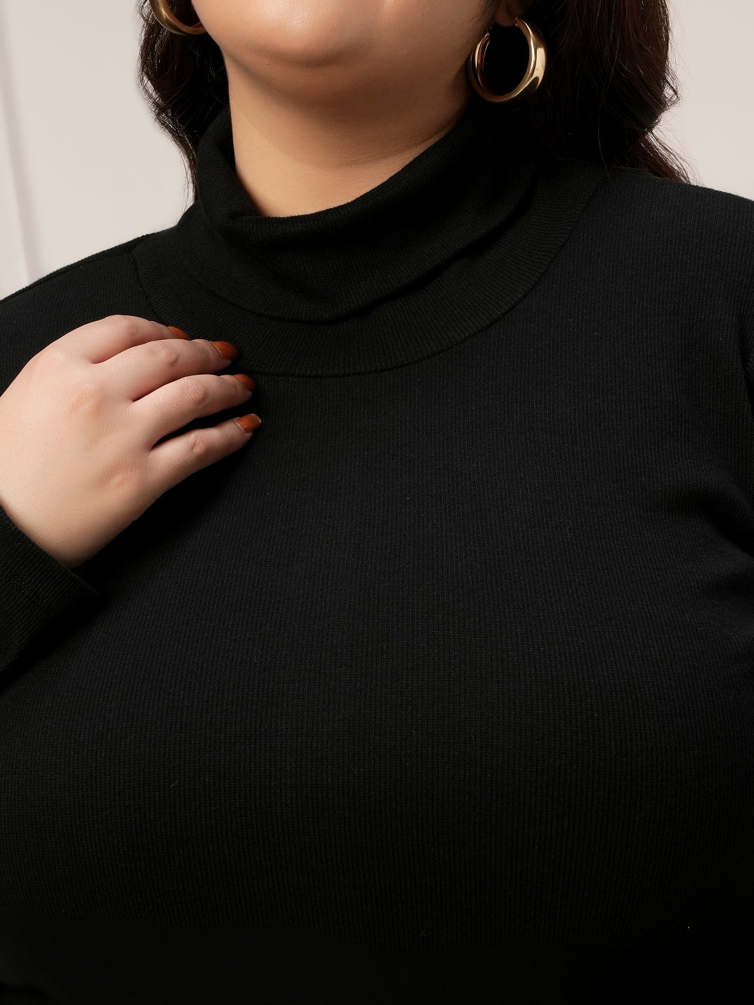 This Women's Plus Size Bodycon Dress offers a sleek, confident look with all-day comfort. Crafted from stretch cotton rib knit, it features a high 4-way stretch that contours beautifully to the body while allowing easy movement. The turtleneck and full sleeves make it ideal for light winter days, while the ribbed texture adds a touch of modern style. Designed in a classic black hue, this maxi bodycon dress includes side slits for ease and elegance, making it perfect for work, casual outings, or evening wear.