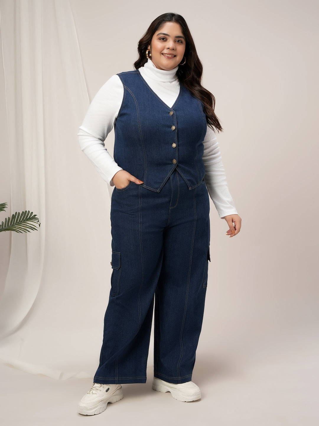 Women’s plus size navy blue denim vest offers a chic, versatile layering option for every season. Made from stretch denim that provides flexibility and durability. Features a sleeveless design with a button-front closure and cropped fit for a flattering, structured silhouette. Ideal for casual, work, or brunch wear — a classic denim staple that adds a stylish edge to any outfit.