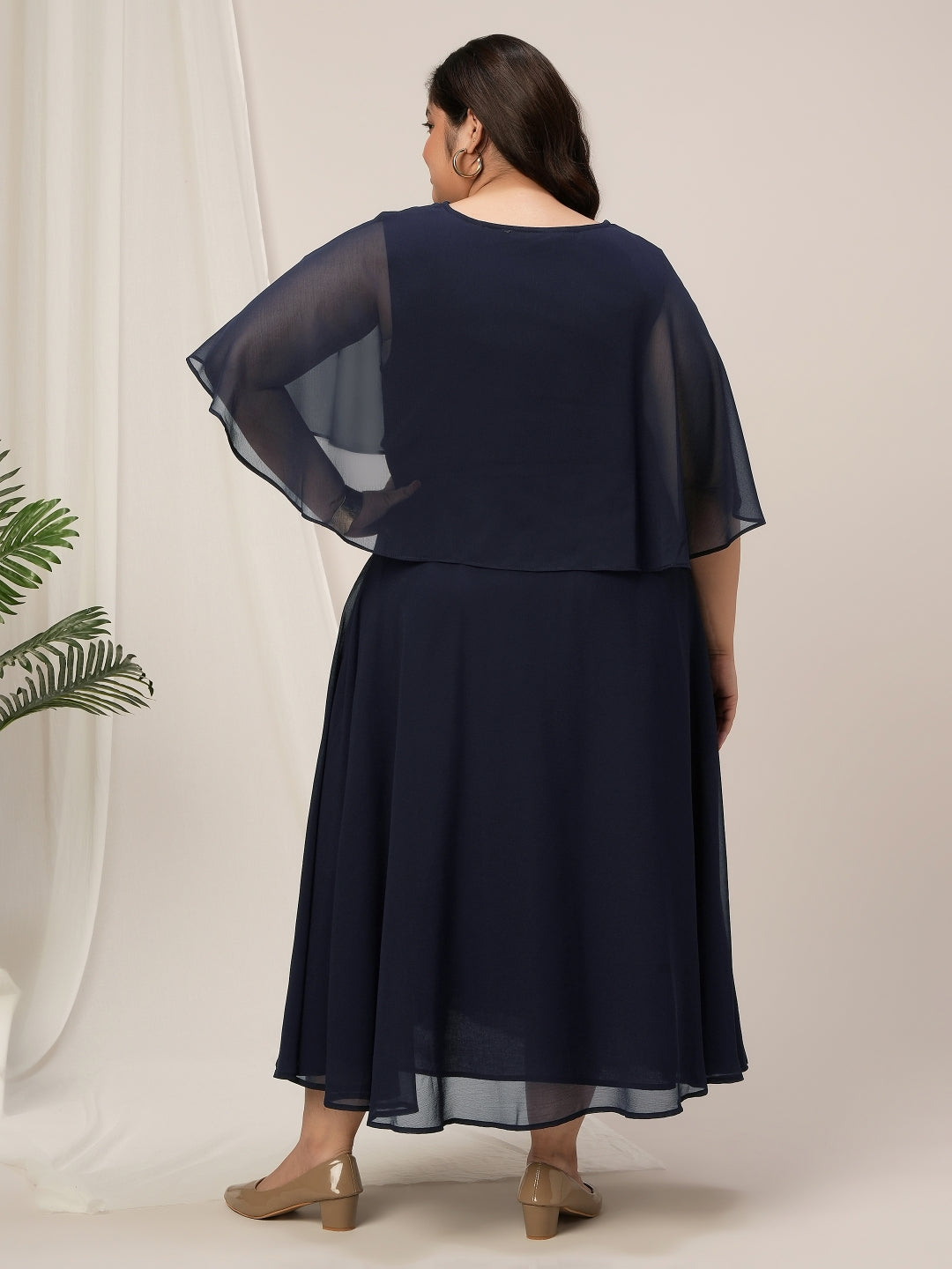 Plus Size Party Georgette Midi Dress Cape Sleeves