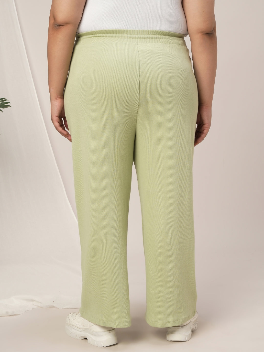 Women Plus Size Wide-Leg Lounge Pants- Light Green
