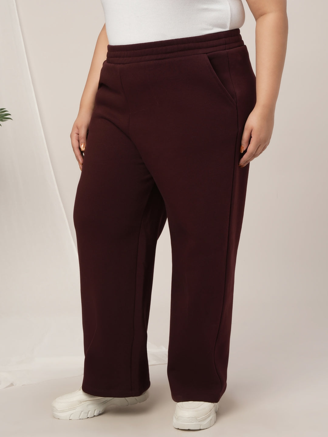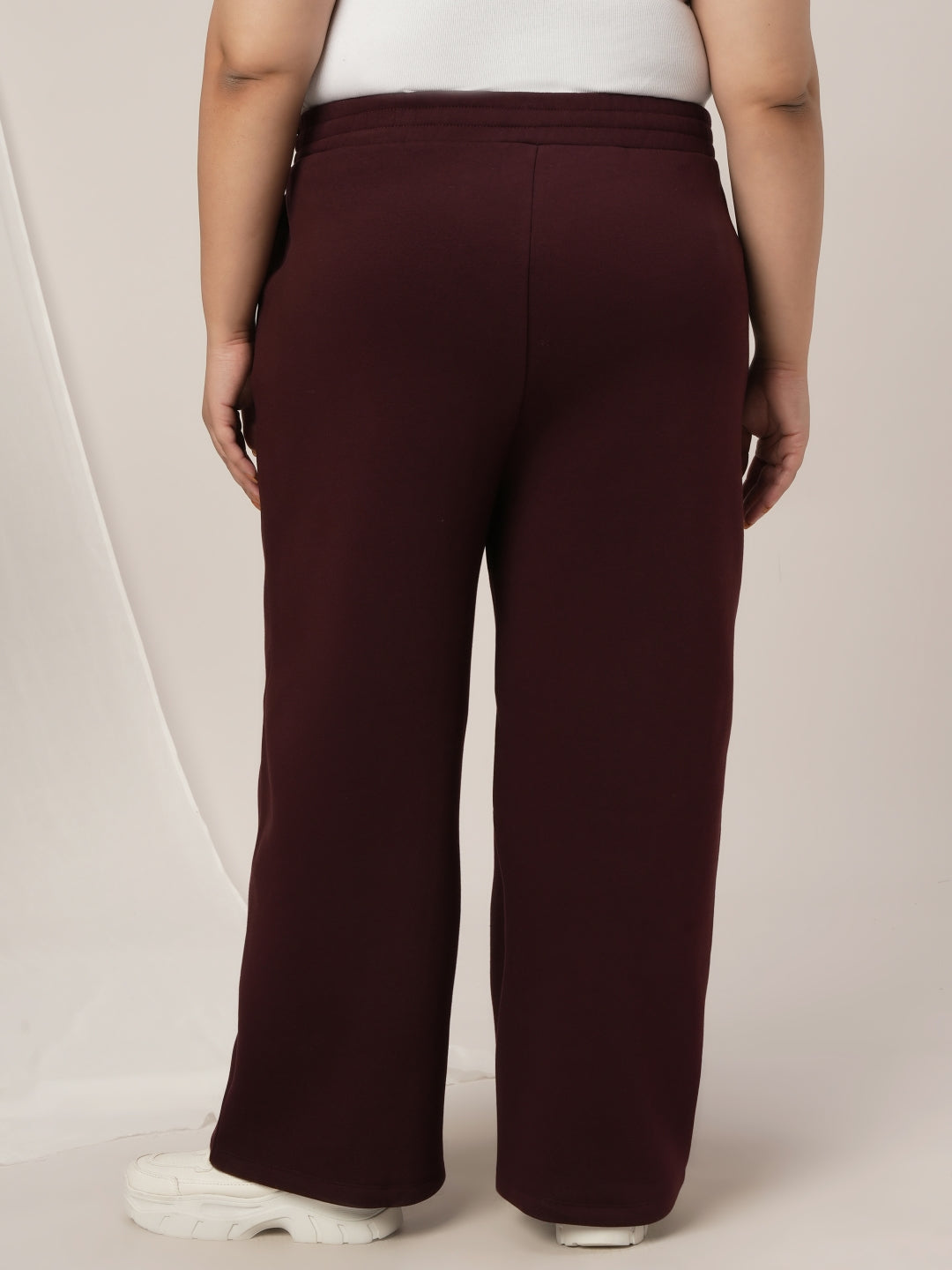Women Plus Size Wide-Leg Winter Fleece Pants- Maroon